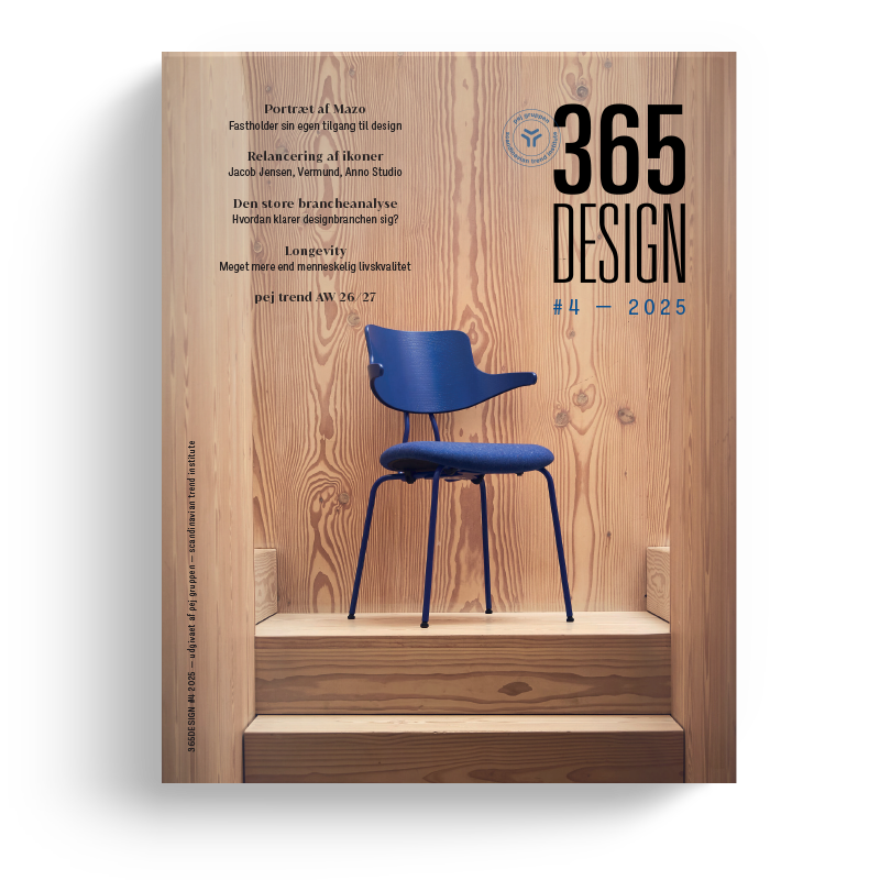 365DESIGN er et bredt favnende brancheunivers for dig, der arbejder professionelt i design-, møbel- og interiørbranchen. Vi holder dig opdateret i tre ugentlige nyhedsmails og fire årlige udgivelser af det trykte branchemagasin.