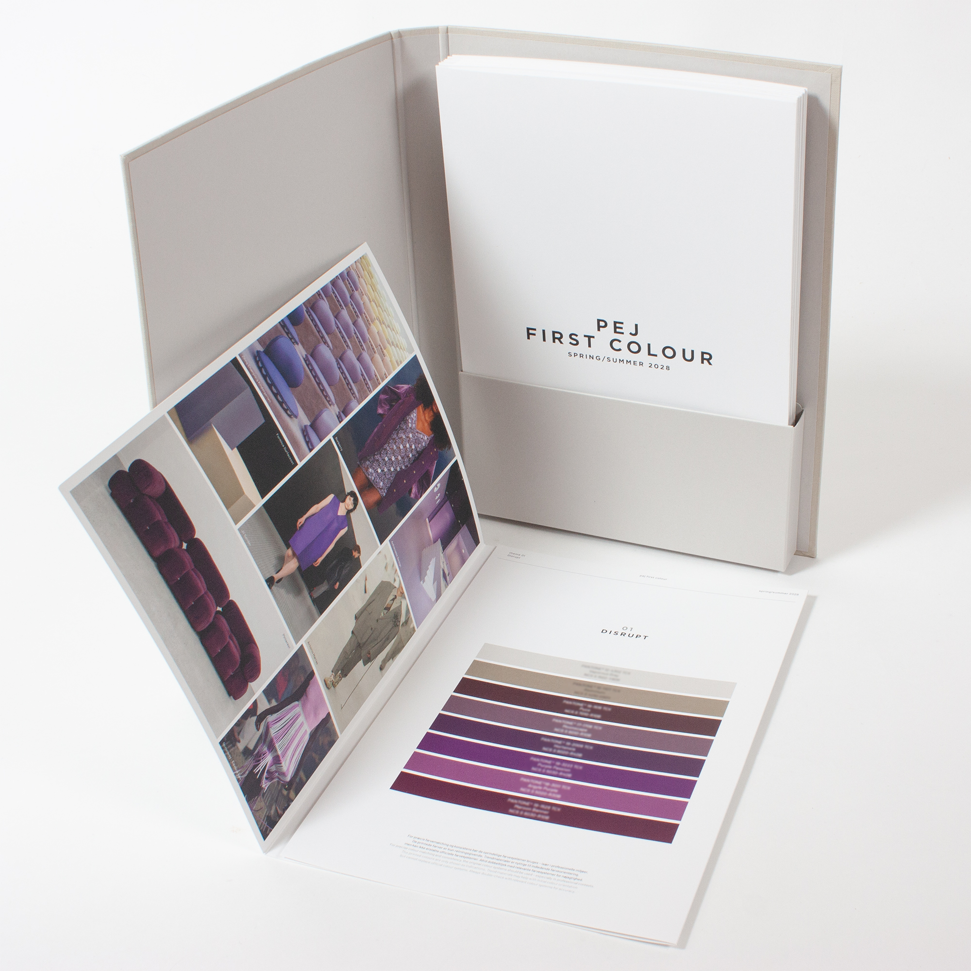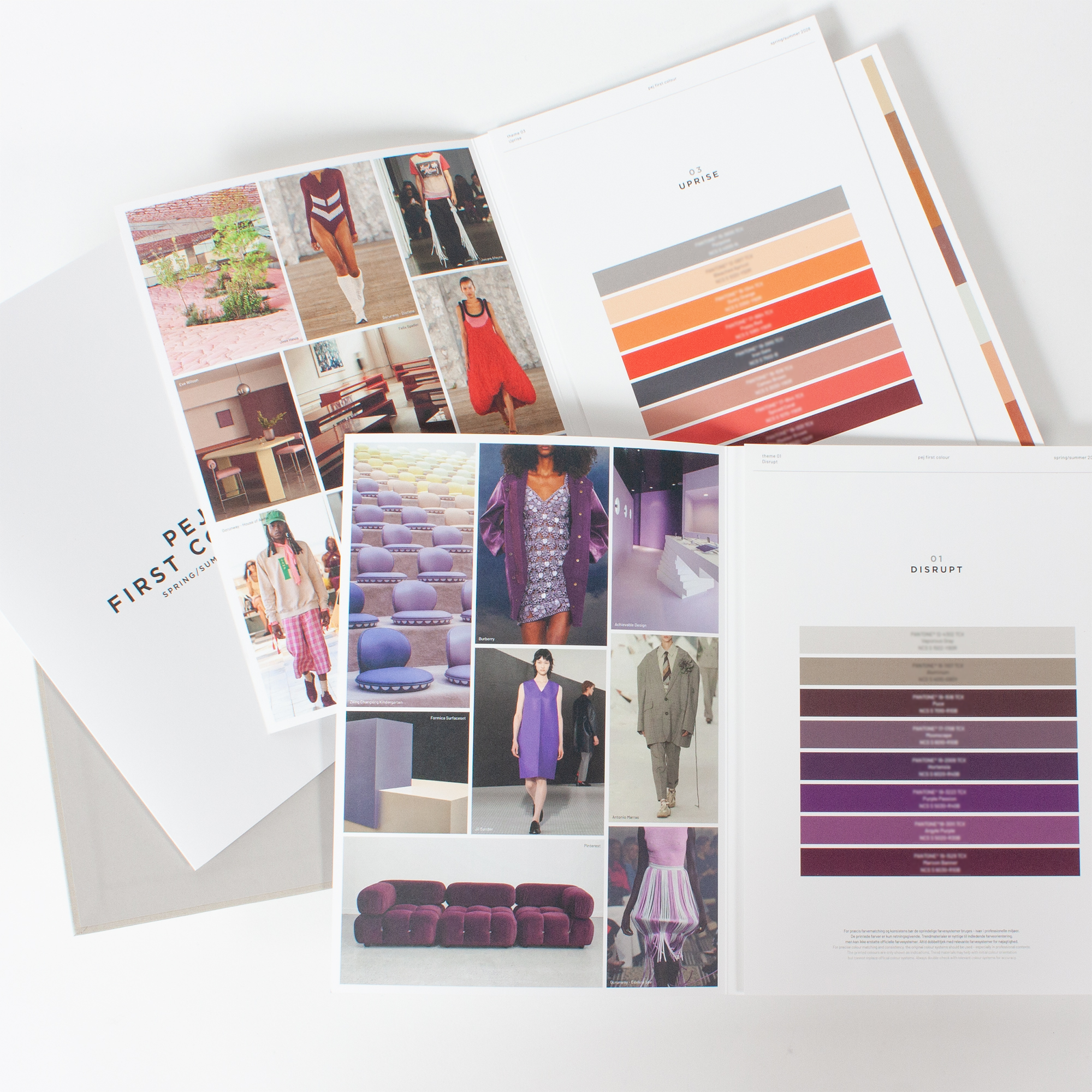 First Colour utgis av pej gruppen er rettet mot alle som trenger en tidlig indikasjon på sesongens trendfarger. Fargekartet utgis i et begrenset opplag.