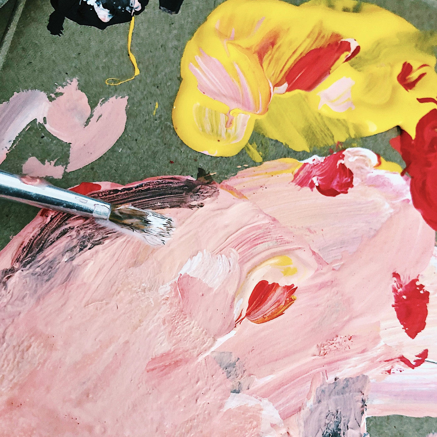 En let og uventet kombination, hvor kølig blågrå skaber ro og struktur. Den bløde, rosa tone tilfører et næsten pudret, nostalgisk lag, mens den klare gule bryder stilheden med et strejf af optimisme. Sammen føles paletten både eftertænksom og livlig.